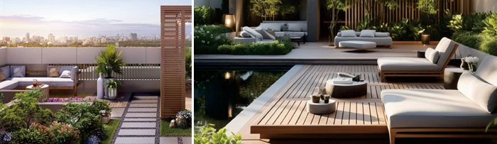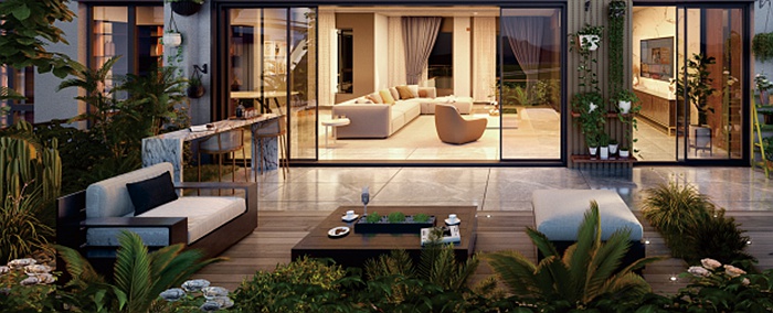 在建筑設(shè)計(jì)上,充分考慮各種花園使用場(chǎng)景的尺度需求,提升城市對(duì)生態(tài)綠化的垂直界面形象。整體采用空中錯(cuò)層露臺(tái)挑高設(shè)計(jì),戶(hù)戶(hù)帶大花園,打通空間邊界,彰顯大宅奢闊尺度,互不干擾,視野開(kāi)闊,享無(wú)界院墅體驗(yàn),營(yíng)造綠色居家生活。