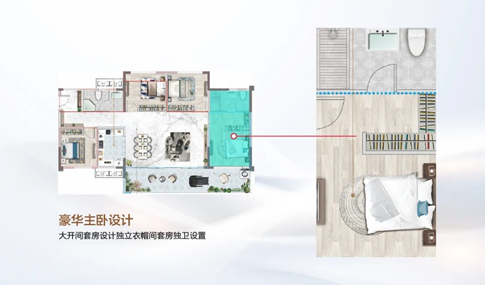 豪華主臥套房設(shè)計(jì),一方私密的奢華天地。動(dòng)靜相宜的布局,將休憩與起居優(yōu)雅劃分。大開間套房,盡顯尊榮氣度。獨(dú)立衛(wèi)生間,于靜謐中享受舒適的沐浴時(shí)光;專屬衣帽間,收納時(shí)尚與精致。在這里,詩(shī)意與私密共舞,每一刻都是對(duì)品質(zhì)生活的極致演繹。